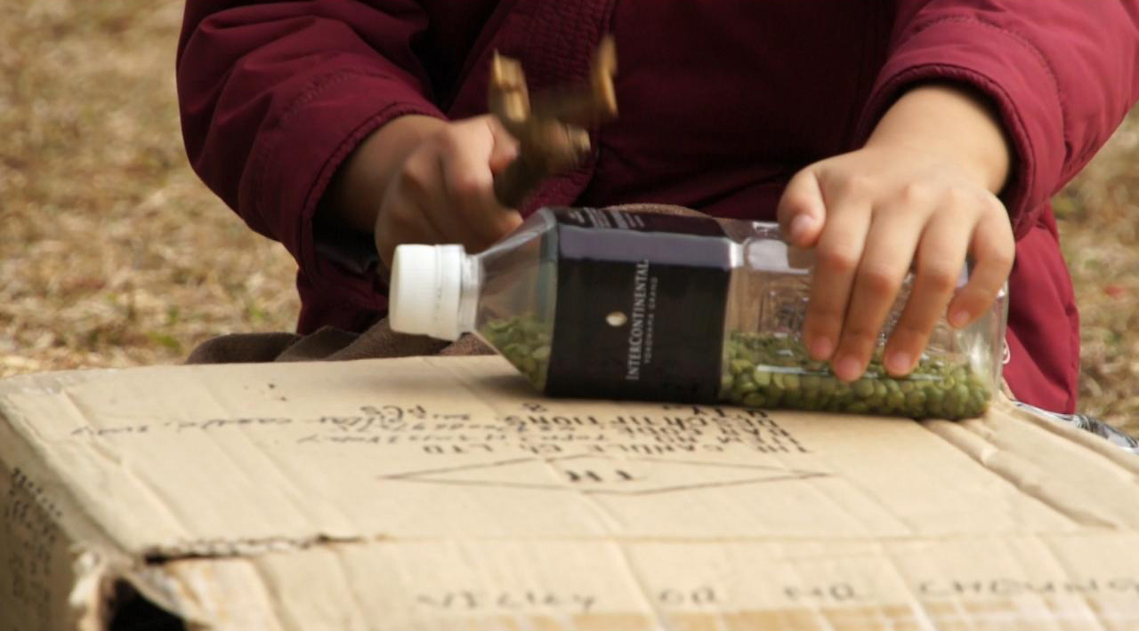 6th week: 對美始有追求,會撿拾公園的東西堆砌;對聲音感興趣,時常敲擊,如在石塊上 Emergence of the notion of beauty by collecting things from the park, begin stacking and arranging collections; interested in sound, make sound by tapping things in the park, like stones